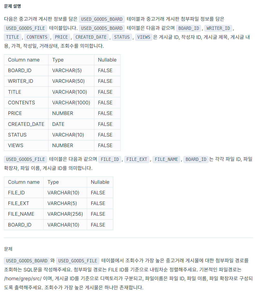 2. 조회수가 가장 많은 중고거래 게시판의 첨부파일 조회하기