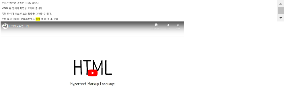 또한 특정 단어에 <i>이탤릭체</i> 또는 <mark>마크</mark> 를 해 줄 수 있다.