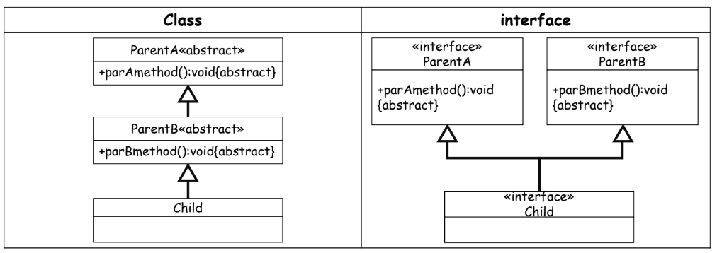 - interface의 상속은 모듈 구조임(필요한 기능들을 모아서 합침)