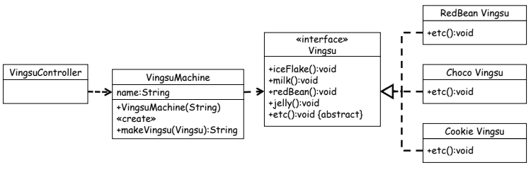//Vingsu 타입에 ChocoVingsu, CookieVingsu, RedBeanVingsu, FruitVingsu가 들어갈 수 있다