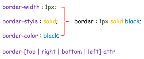 - border-방향-속성 형식으로 각 방향에 대한 속성을 설정할 수 도 있다.