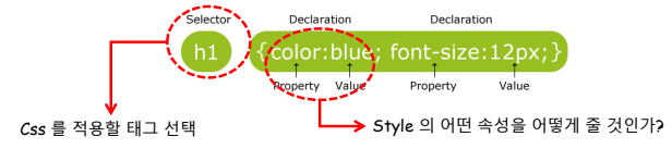 - <head>에 <style>을 넣어 태그를 지정하여 꾸밈 : html문서 내에 따로 설정