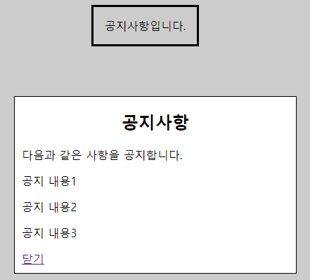 - Opacity와 z-index를 활용해서 공지사항 띄워보기
