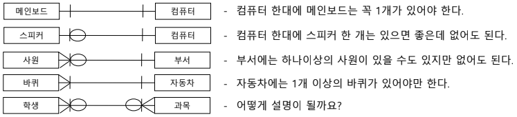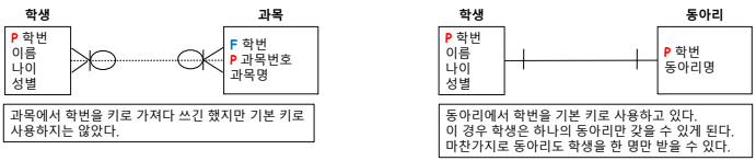 - 점선(비식별 관계) : 부모의 primary key를 자식이 primary key로 사용 X