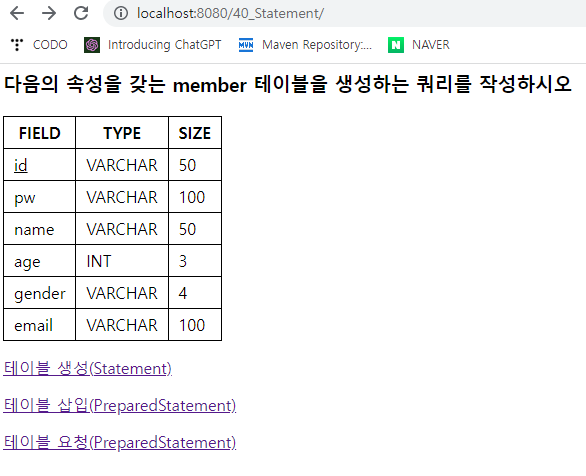 <p><a href="stmt">테이블 생성(Statement)</a></p>