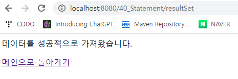 <p><a href="resultSet">테이블 요청(PreparedStatement)</a></p>