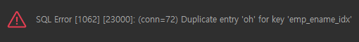 -- Error : Duplicate entry 'kim' for key 'emp_ename_idx'